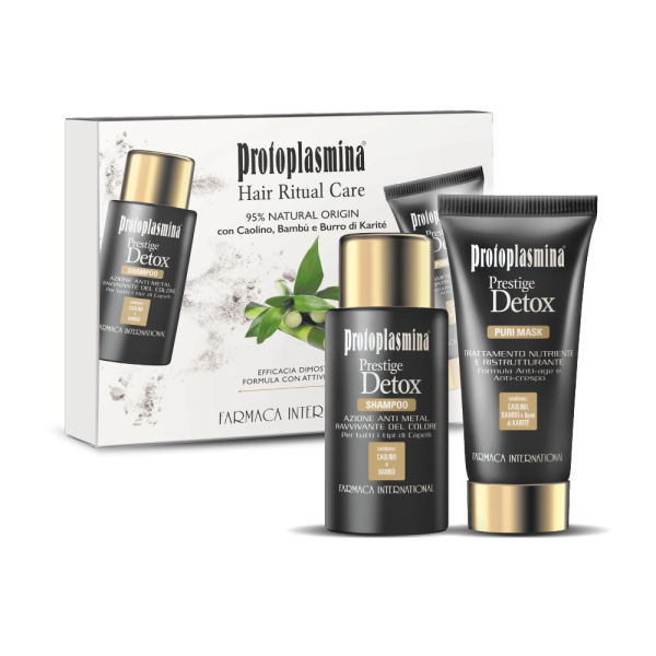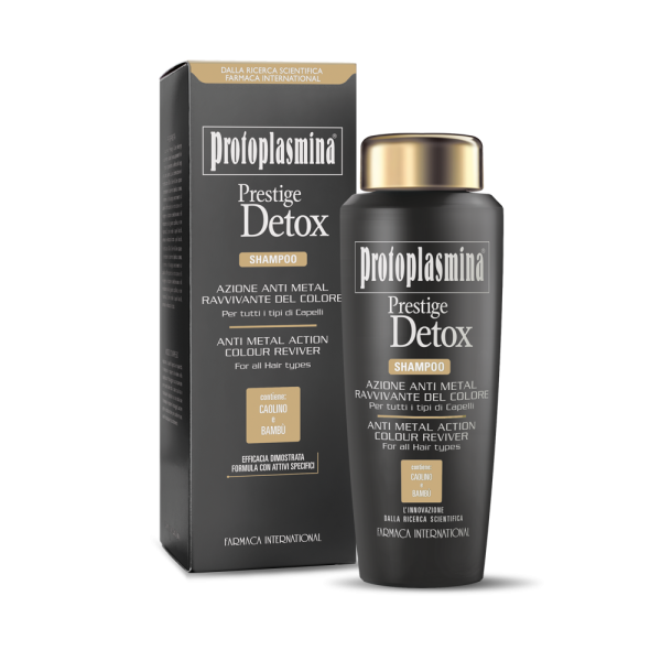 Durante l'azione di lavaggio le particelle di metallo presenti nell’acqua possono penetrare nella fibra capillare diventando una delle principali cause di rottura del capello, sbiadimento del colore e comparsa di riflessi indesiderati. Protoplasmina Prestige Detox, formulato con Sodio Gluconato, chelante naturale dall’azione detossinante, deterge delicatamente i capelli rimuovendo le particelle metalliche e nutrendo in profondità la fibra capillare.